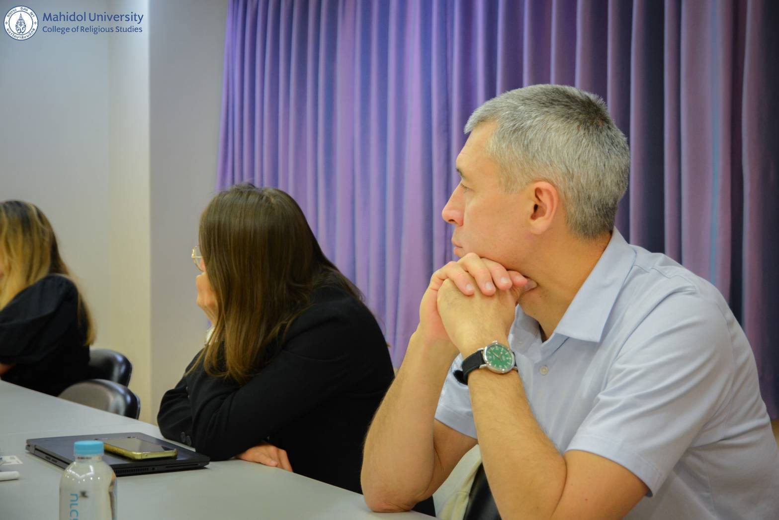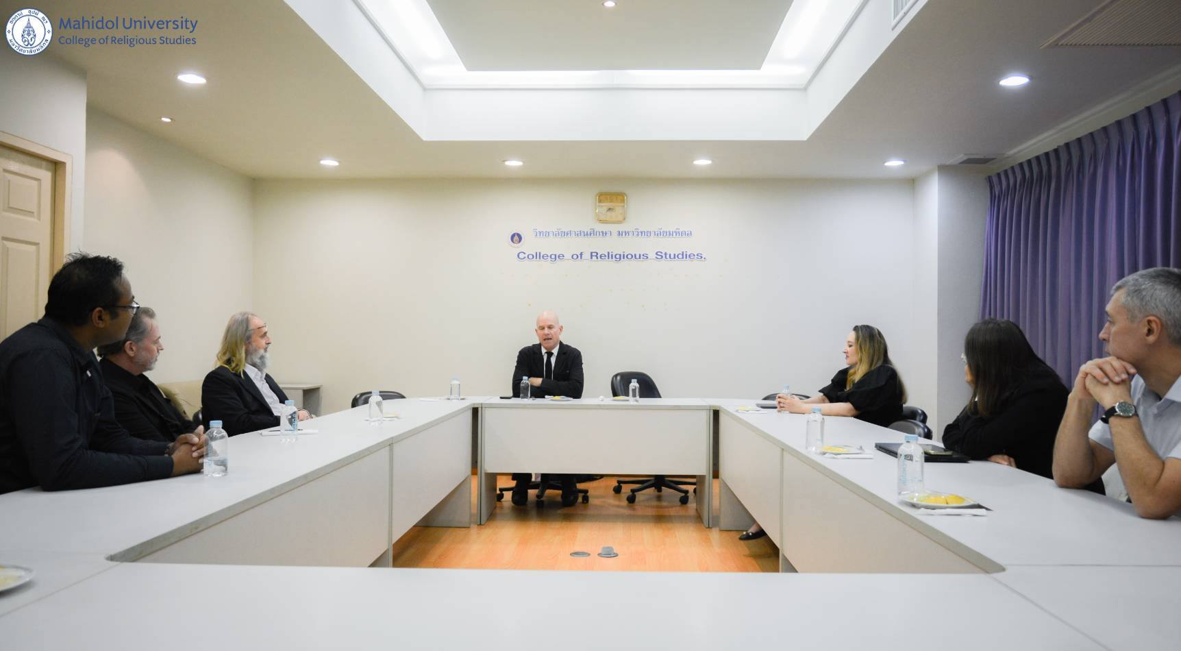 The College of Religious Studies, Mahidol University, led by Asst. Prof. Dr. Pairor Makcharoen, Dean of the College of Religious Studies, together with Assoc. Prof. Dr. Milos Hubina, Associate Dean for Research and International Relations, and CRS faculty members, warmly welcomed Professor James Robson,