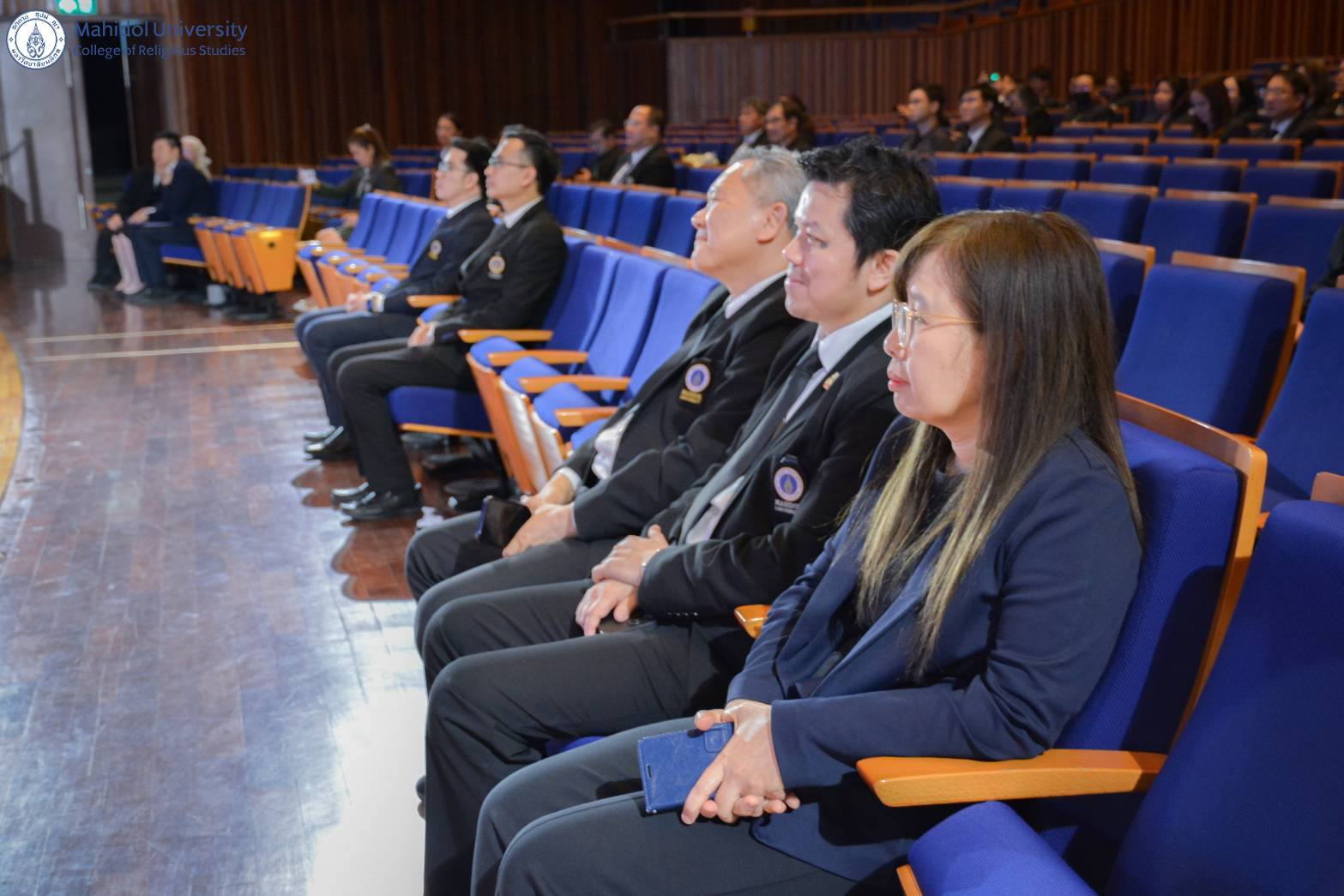 งานดังกล่าวได้รับเกียรติจาก ศาสตราจารย์ นายแพทย์ปิยะมิตร ศรีธรา อธิการบดีมหาวิทยาลัยมหิดล เป็นประธานในพิธี พร้อมด้วยคณะผู้บริหารจากหลากหลายส่วนงานเข้าร่วมแสดงความยินดี โดยในโอกาสนี้ คณบดีวิทยาลัยศาสนศึกษาได้เข้าร่วมแสดงความยินดีกับคณาจารย์ทั้งสามท่าน