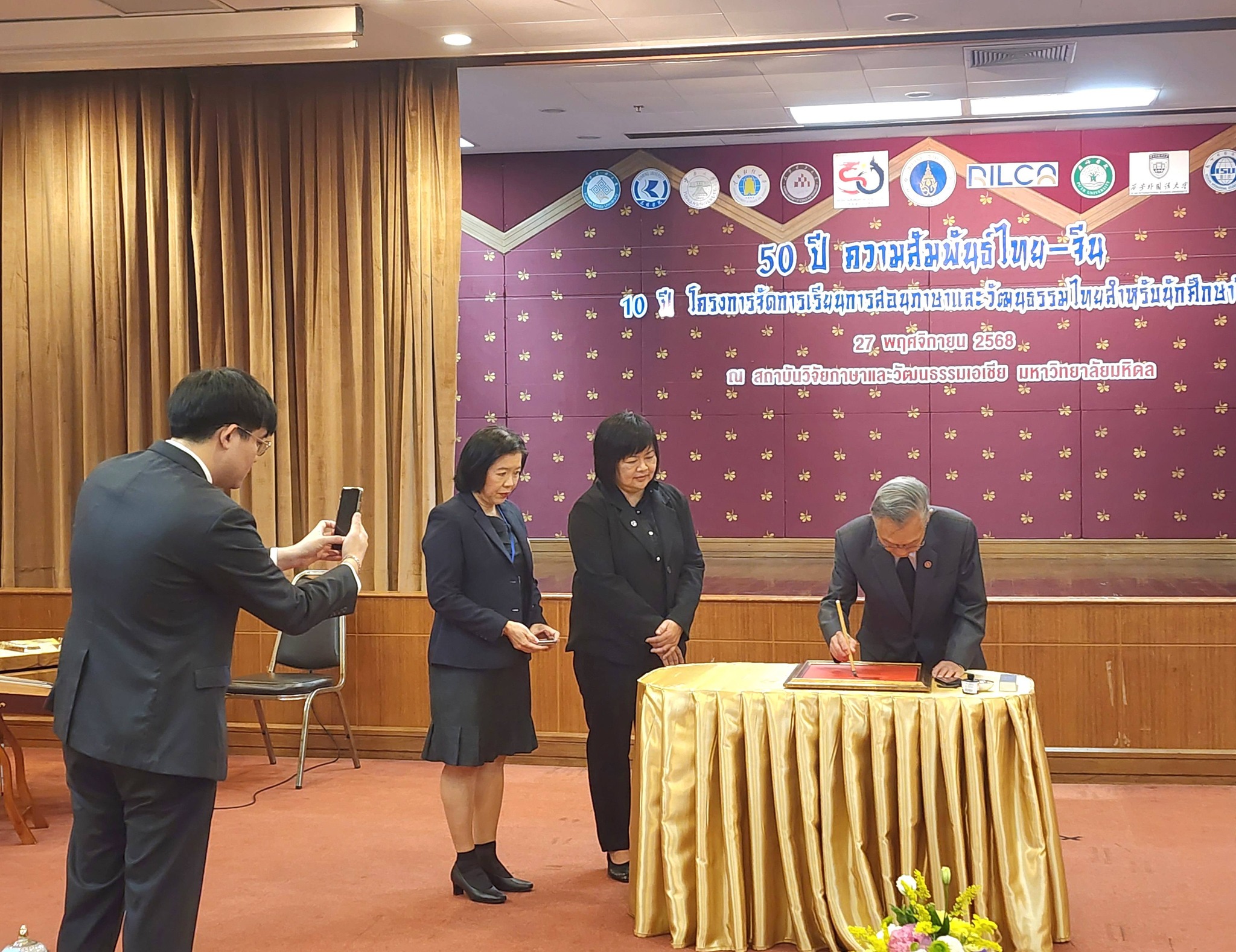 วิทยาลัยศาสนศึกษา ร่วมฉลอง "50 ปี ความสัมพันธ์ไทย-จีน และ 10 ปี โครงการจัดการเรียนการสอนภาษาและวัฒนธรรมไทยสำหรับนักศึกษาจีน" วันที่ 27 พฤศจิกายน 2568 อาจารย์ ดร.จิราธร ชาติศิริ รักษาการแทนรองคณบดีฝ่ายการศึกษาและกิจการนักศึกษา วิทยาลัยศาสนศึกษา ได้เข้าร่วมงาน "50 ปี ความสัมพันธ์ไทย-จีน และ 10 ปี โครงการจัดการเรียนการสอนภาษาและวัฒนธรรมไทยสำหรับนักศึกษาจีน" ณ สถาบันวิจัยภาษาและวัฒนธรรมเอเชีย มหาวิทยาลัยมหิดล ภายในงานได้ร่วมเป็นเกียรติให้การต้อนรับ ฯพณฯ ชวน หลีกภัย อดีตนายกรัฐมนตรี โดยมี รองศาสตราจารย์ ดร.นันทิยา ดวงภุมเมศ ผู้อำนวยการสถาบันวิจัยภาษาและวัฒนธรรมเอเชีย ให้การต้อนรับคณะผู้เข้าร่วมงานเป็นอย่างดี ณ ห้องประชุมอเนกประสงค์ ชั้น 2 สถาบันวิจัยภาษาและวัฒนธรรมเอเชีย มหาวิทยาลัยมหิดล