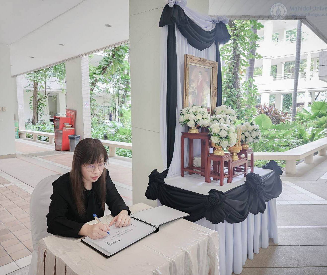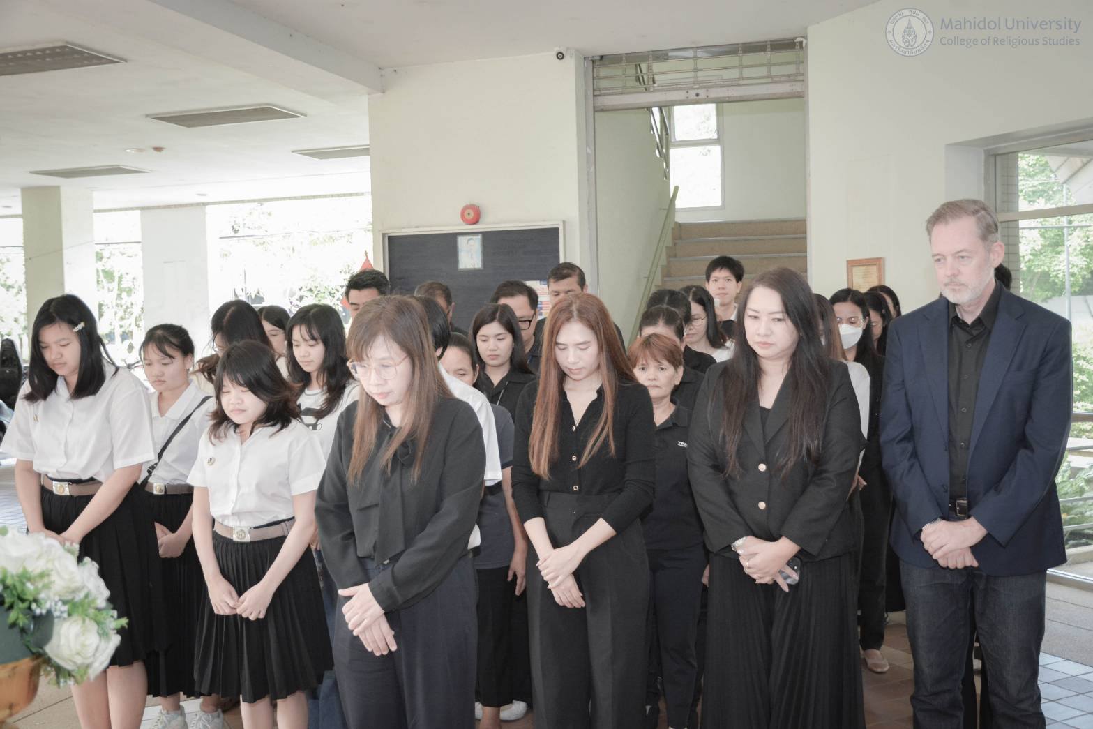 คณะผู้บริหาร คณาจารย์ บุคลากร และนักศึกษาวิทยาลัยศาสนศึกษา มหาวิทยาลัยมหิดล พร้อมใจกันจัดพิธีถวายความอาลัยและน้อมรำลึกในพระมหากรุณาธิคุณแด่ สมเด็จพระนางเจ้าสิริกิติ์ พระบรมราชินีนาถ พระบรมราชชนนีพันปีหลวง