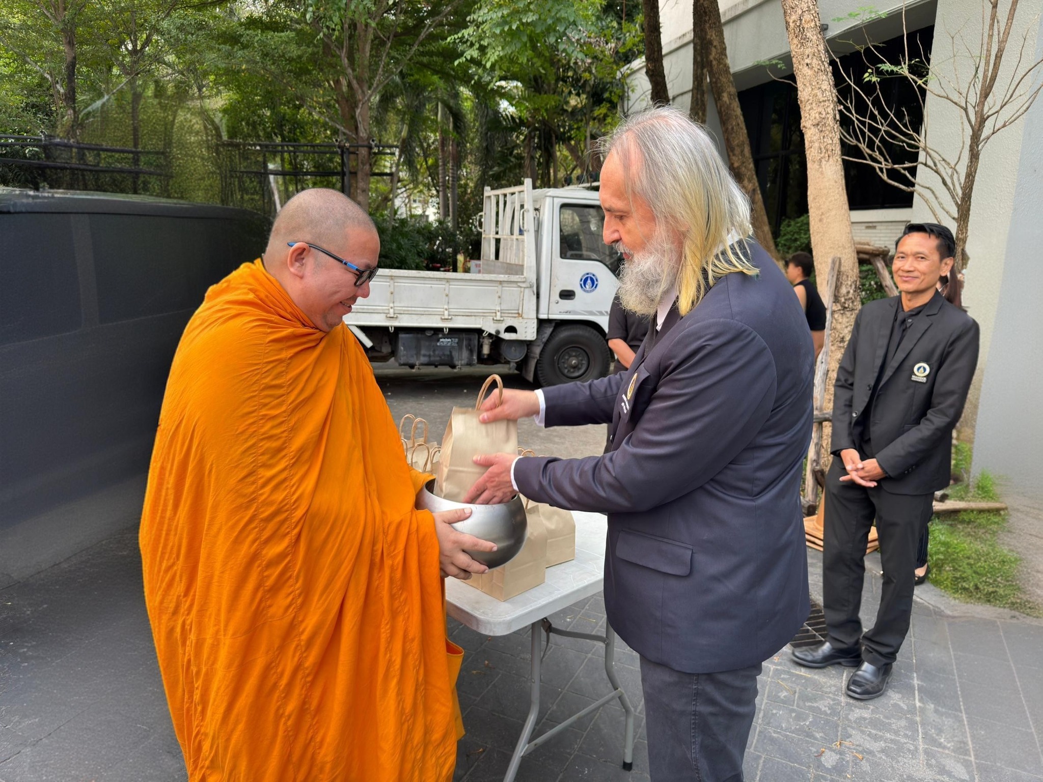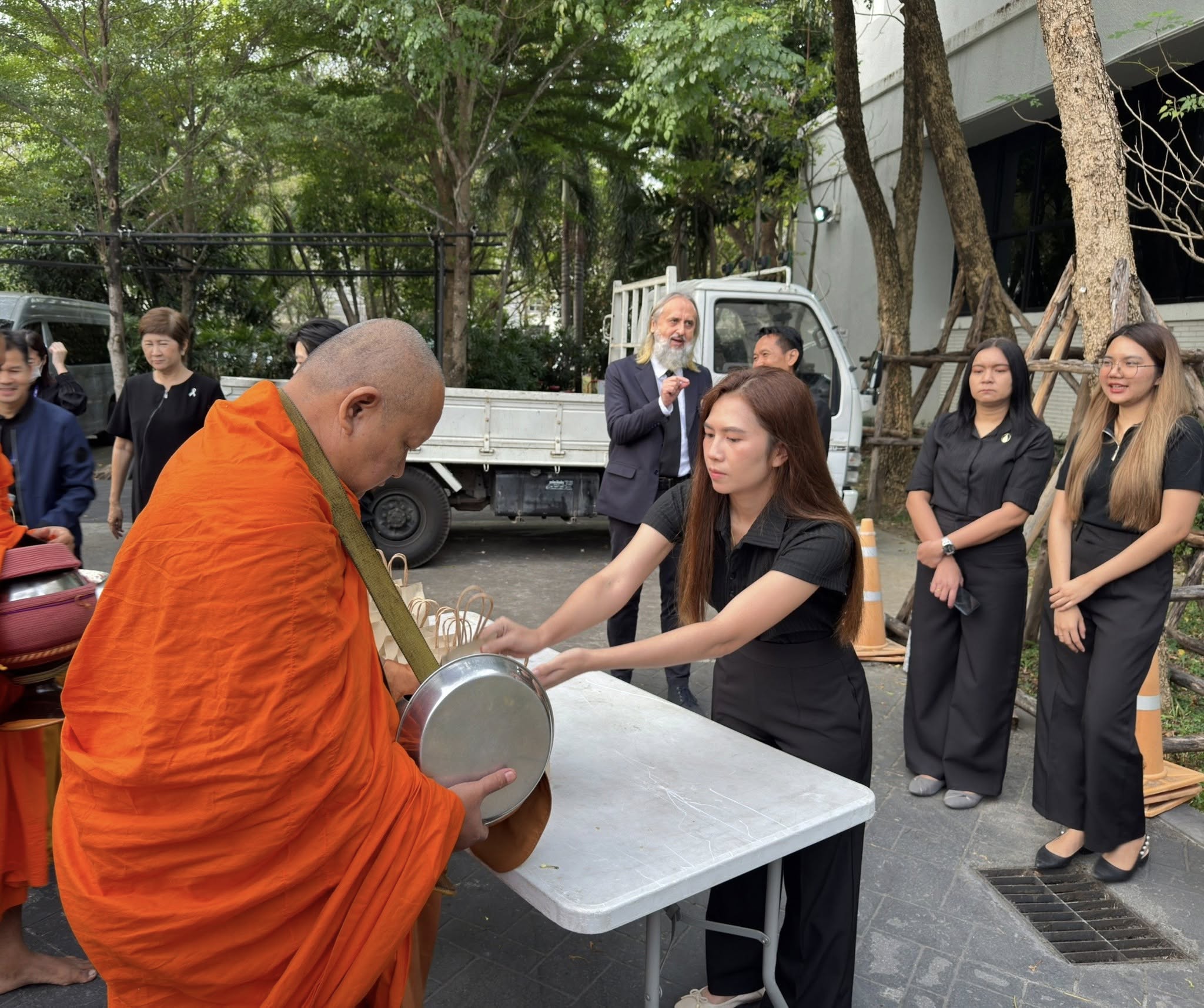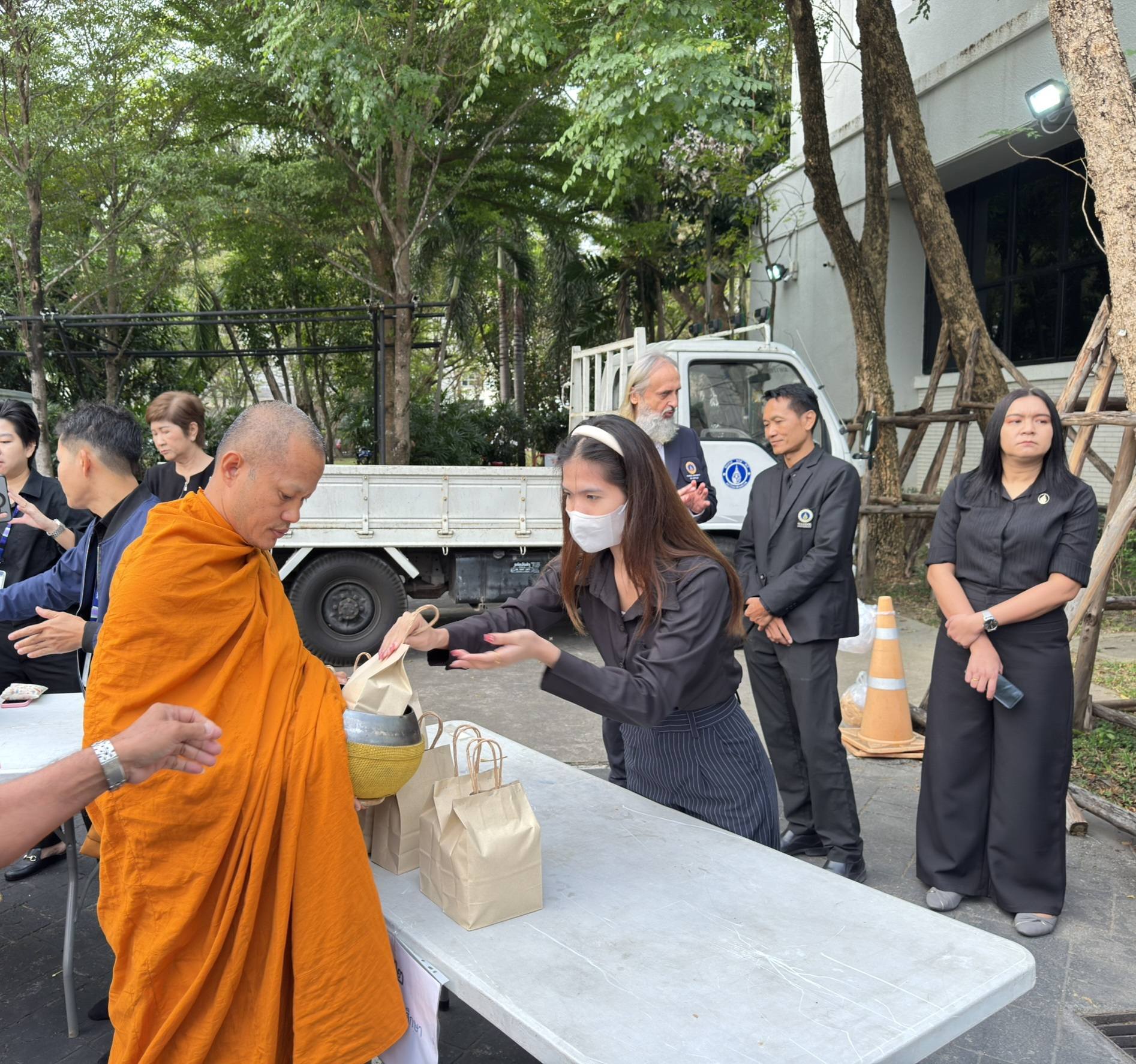 ในการนี้ Assoc. Prof. Dr.Milos Hubina รองคณบดีฝ่ายวิจัยและวิเทศสัมพันธ์ อาจารย์ ดร.บุญมี พวงเพชร อาจารย์ประจำวิทยาลัย และบุคลากรของวิทยาลัยศาสนศึกษาได้ร่วมพิธีทำบุญตักบาตรถวายเป็นพระราชกุศลอย่างพร้อมเพรียงกัน ณ สำนักงานอธิการบดี มหาวิทยาลัยมหิดล ศาลายา