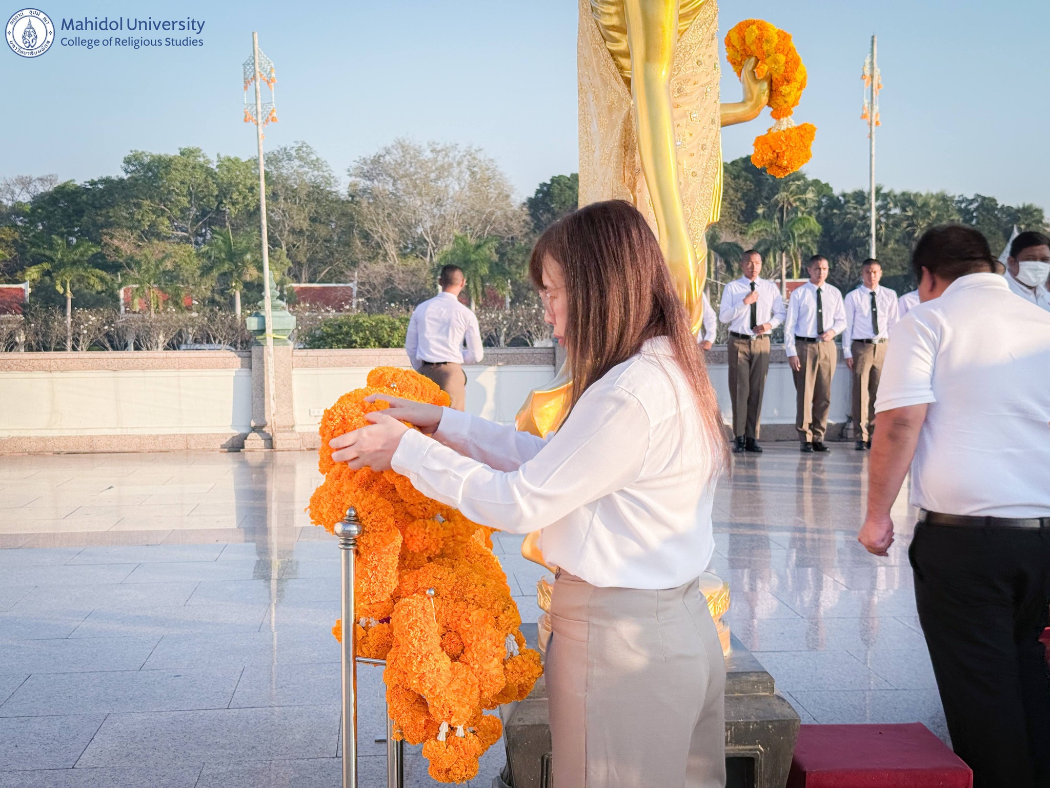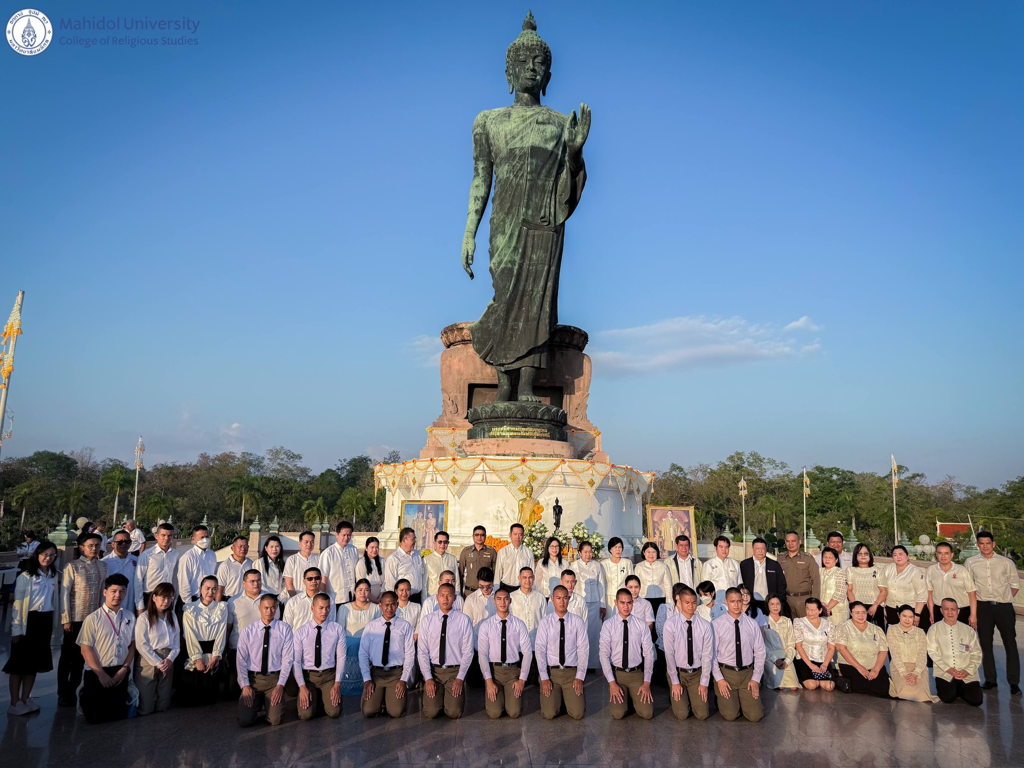December 23, 2025 – Asst. Prof. Dr. Pairor Makcharoen, Dean of the College of Religious Studies, acting as the representative of Mahidol University, participated in the event “Continuing the Royal Faith: Paying Homage to Phra Sri Sakkaya Thotsaphonlayan, the Presiding Buddha of Phutthamonthon Suthat (Fiscal Year 2026)” at Phutthamonthon, Phutthamonthon District, Nakhon Pathom Province.