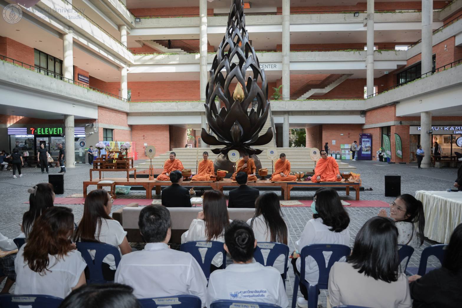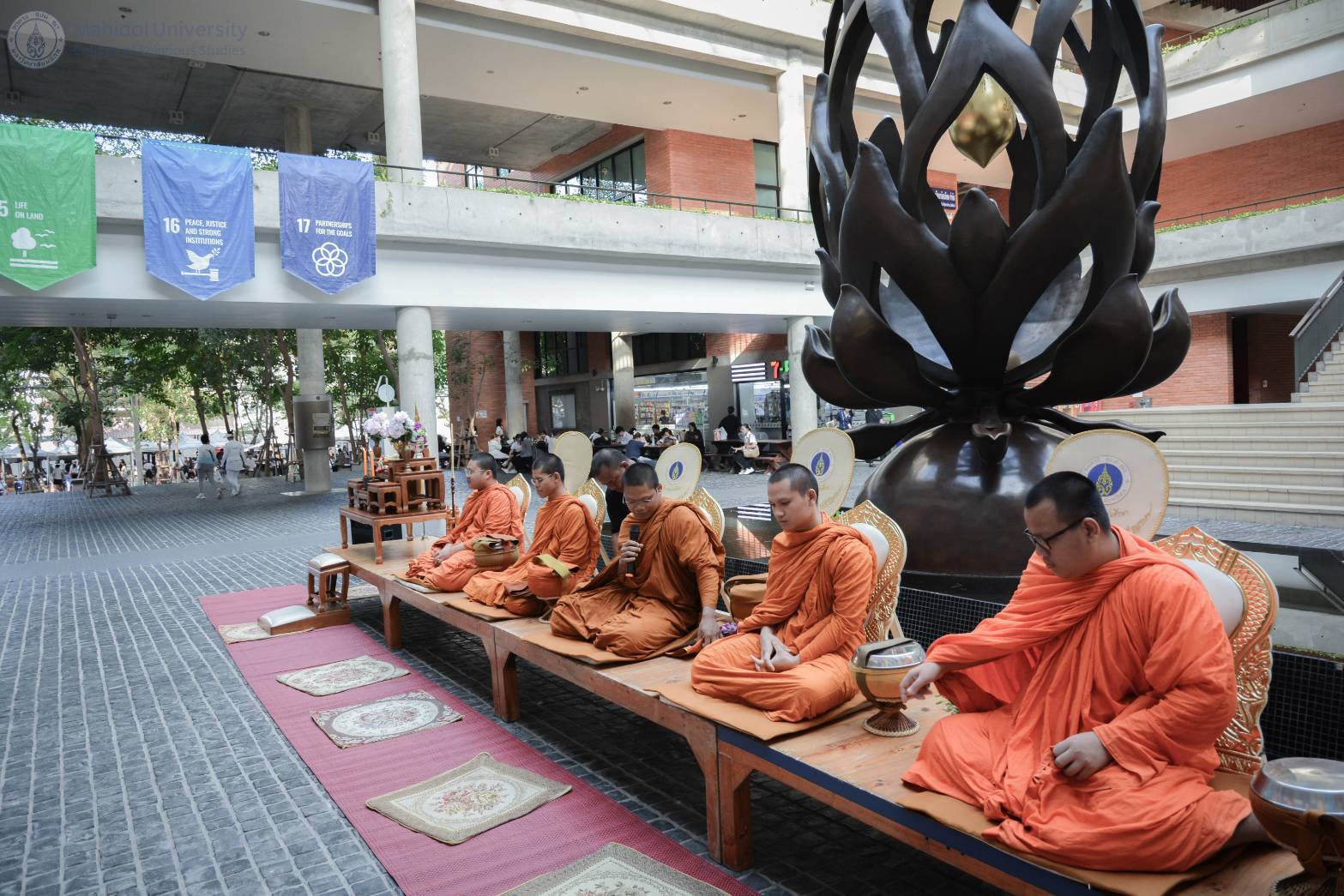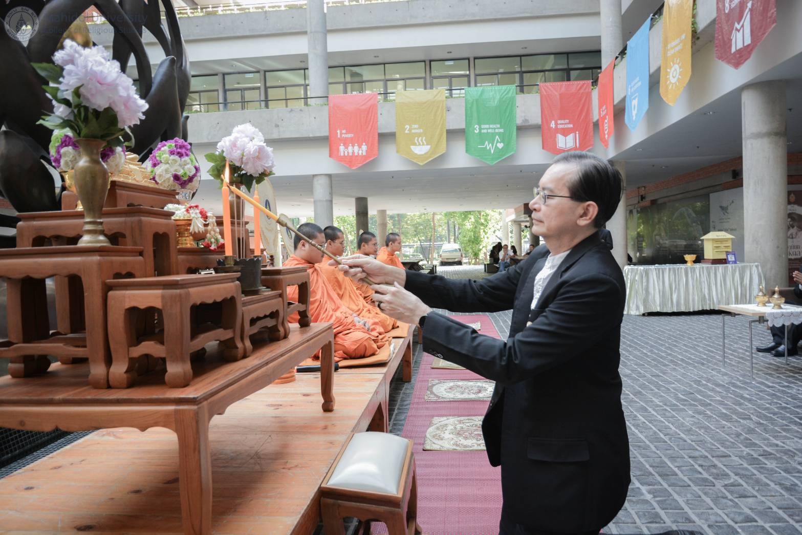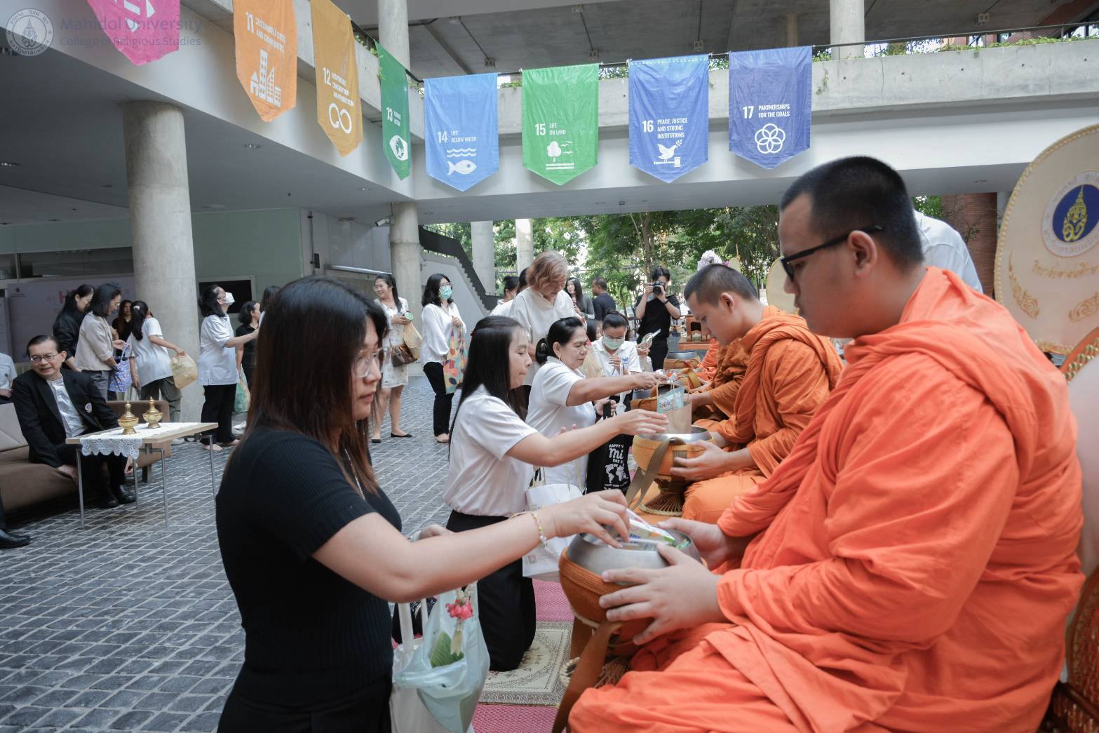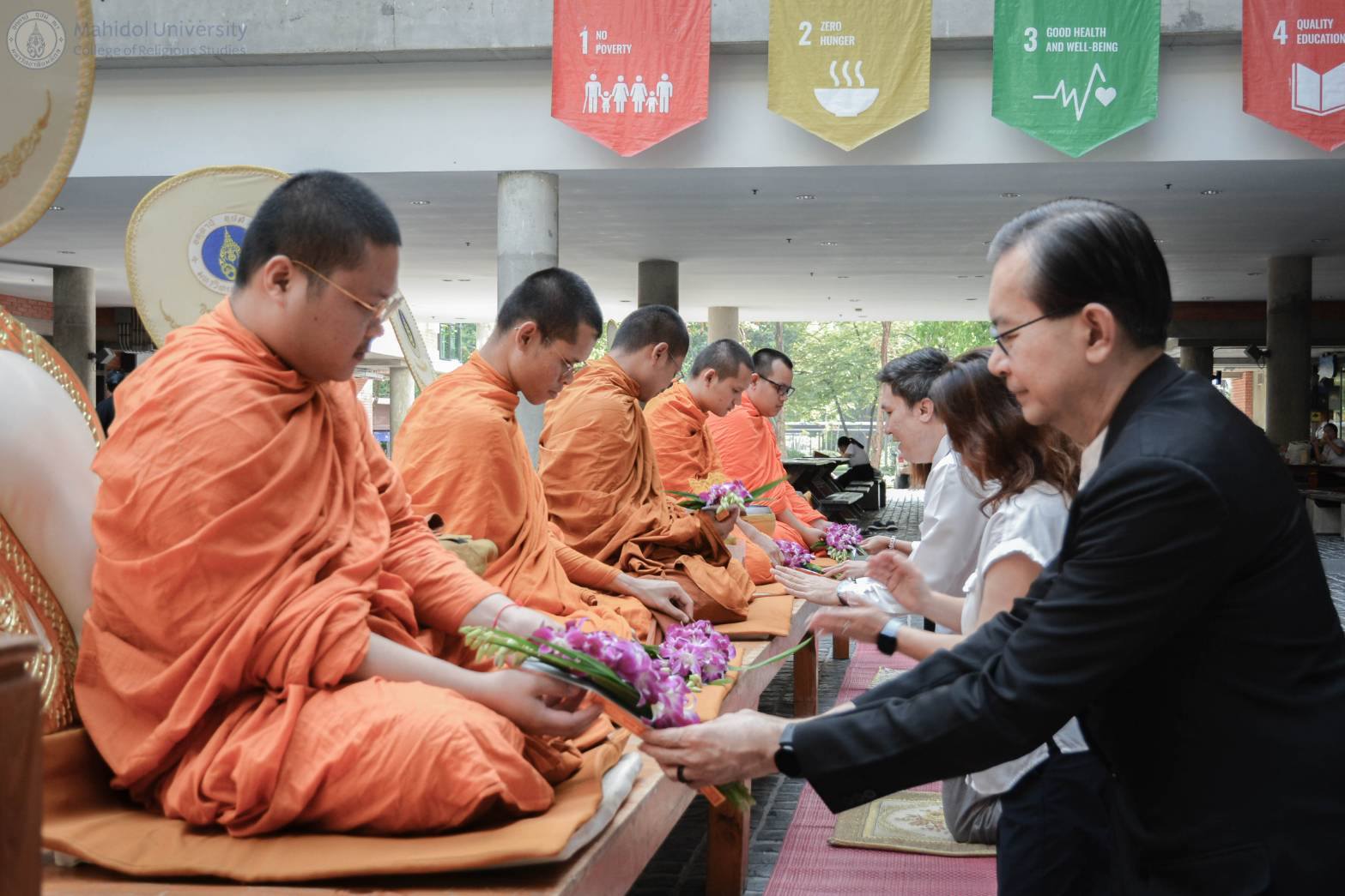 31 ตุลาคม 2568 วิทยาลัยศาสนศึกษา มหาวิทยาลัยมหิดล จัดพิธี ทำบุญเดือนเกิดประจำเดือนตุลาคม เพื่อเสริมสิริมงคลแก่ประชาคมมหิดลและผู้ที่เกิดในเดือนนี้ ณ ลานประติมากรรมดอกกันภัย อาคารศูนย์การเรียนรู้ มหาวิทยาลัยมหิดล ในพิธีได้รับเกียรติจาก รศ.ดร.อธิวัฒน์ เจี่ยวิวรรธน์กุล รองผู้อำนวยการฝ่ายแผนและพัฒนาคุณภาพ สถาบันแห่งชาติเพื่อการพัฒนาเด็กและครอบครัว เป็นประธานในงาน พร้อมกล่าวอวยพรแก่ผู้ที่เกิดในเดือนนี้ โดยมี ผศ.ดร.สมบูรณ์ วัฒนะ อาจารย์ประจำวิทยาลัยศาสนศึกษา เป็นผู้แทนวิทยาลัยศาสนศึกษา มอบของที่ระลึกแก่เจ้าภาพ และสถาบันแห่งชาติเพื่อการพัฒนาเด็กและครอบครัวได้ร่วมมอบปัจจัยทำบุญเป็นจำนวน 2,000 บาท เพื่อสมทบทุนส่วนกลาง วิทยาลัยศาสนศึกษา ขออาราธนาคุณพระศรีรัตนตรัยและสิ่งศักดิ์สิทธิ์ทั้งหลาย ดลบันดาลให้ทุกท่านประสบแต่ความสุข ความเจริญ และขอขอบคุณทุกท่านที่มาร่วมบุญในครั้งนี้ เตรียมพบกับพิธีทำบุญเดือนเกิดครั้งต่อไป วันศุกร์ที่ 28 พฤศจิกายน 2568 โดยมี สถาบันวิจัยประชากรและสังคม มหาวิทยาลัยมหิดล เป็นเจ้าภาพ โครงการนี้ยังสอดคล้องกับเป้าหมายการพัฒนาอย่างยั่งยืน SDG 11 เมืองและชุมชนยั่งยืน เสริมสร้างความเป็นสิริมงคลและสายสัมพันธ์อันดีในประชาคมมหิดล