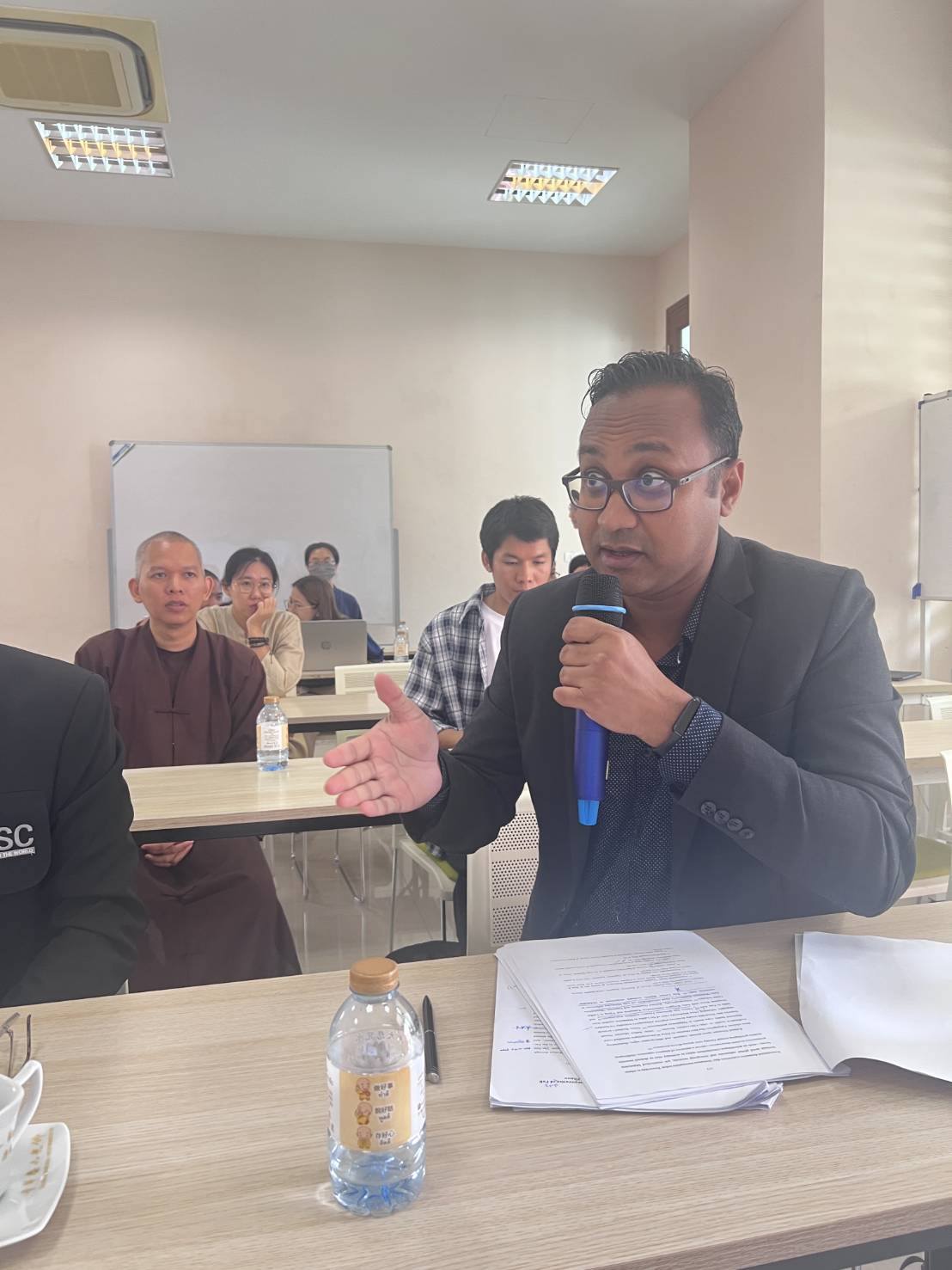 CRS Lecturer Represents Mahidol University at the International Academic Seminar on Pali-Chinese Buddhist Studies From November 1 to 2, 2025, Dr. Sanjoy Barua Chowdhury, lecturer of the College of Religious Studies (CRS) of Mahidol University (MU), joined the first International Academic Seminar on Pali-Chinese Buddhist Studies, which was hosted by Mahachulalongkornrajavidyalaya University (MCU) and Fo Guang Shan Thaihua Temple of Thailand. As a representative from the College of Religious Studies (CRS) of Mahidol University (MU), Dr. Sanjoy Barua Chowdhury collaborates with the faculties of the International Buddhist Studies College (IBSC) of Mahachulalongkornrajavidyalaya University (MCU) to evaluate graduate students' academic papers in this symposium.
