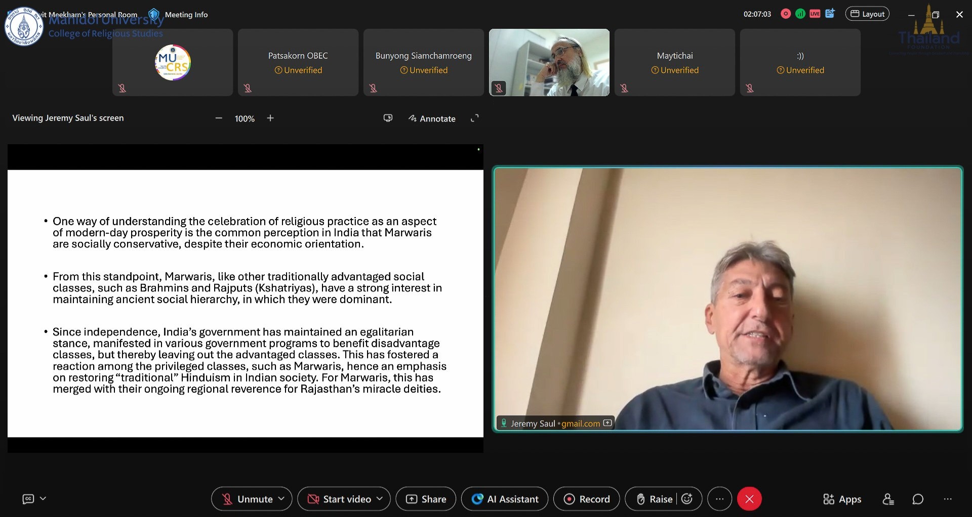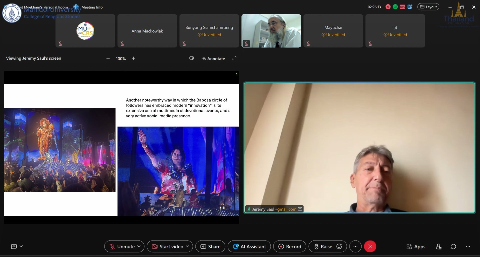 On 12 December 2025 14:00 (Thailand Time), the College of Religious Studies, Mahidol University, organized, in collaboration with the Thailand Foundation, an international academic lecture entitled “Miracles Make the World Go Around: Tracking Babosa and His Public” as part of the MU-CRS Seminar on Contemporary Religious Studies, conducted online via Webex.